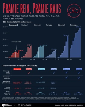 Berlin (ots) – Jährliche E-Auto-Studie zeigt: Norwegen erreicht 96 % BEV-Marktanteil ohne direkte Kaufprämie. Finnland erreicht 37 % mit nur 25 Millionen Euro an direkten Zuschüssen, Deutschland 19 % mit 10 Milliarden. Der Gebrauchtmarkt wächst … Lesen Sie hier weiter…